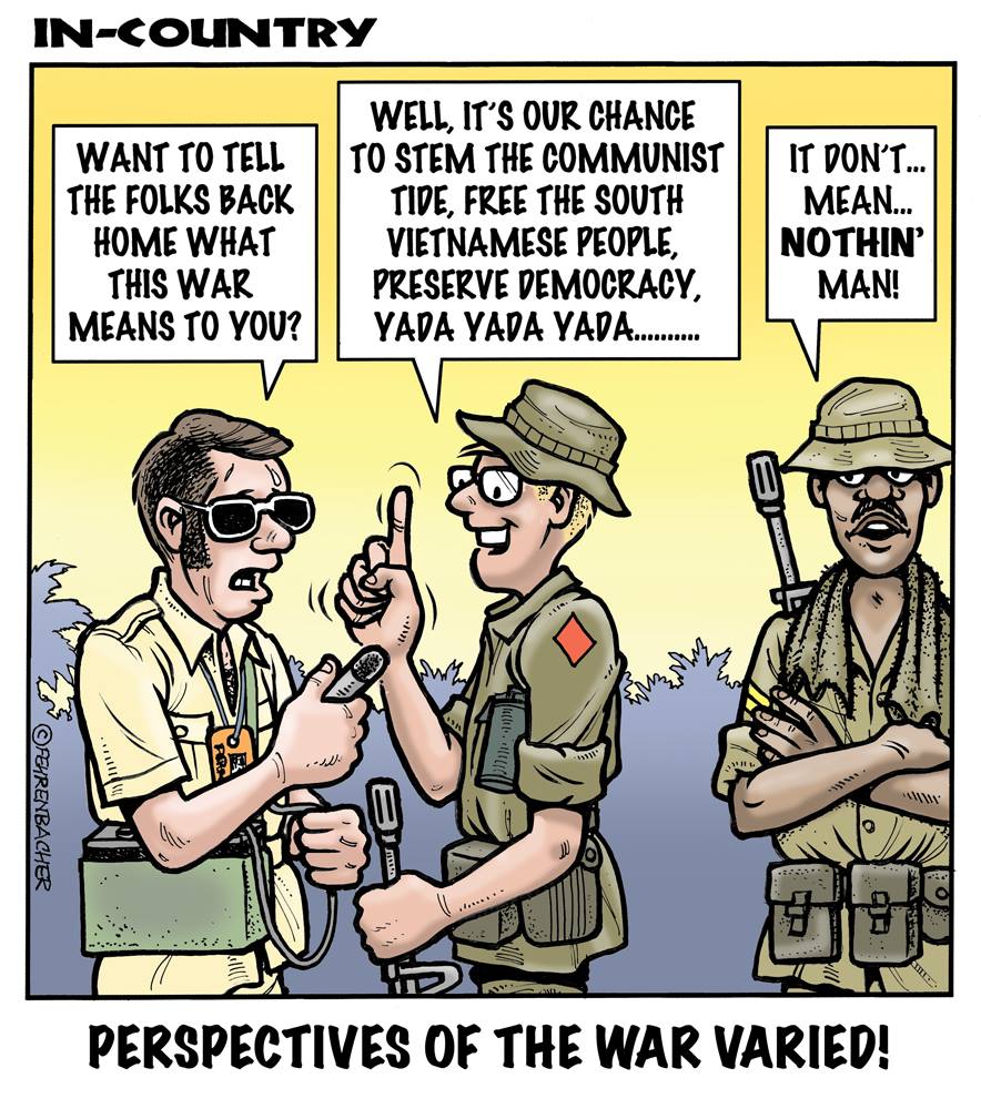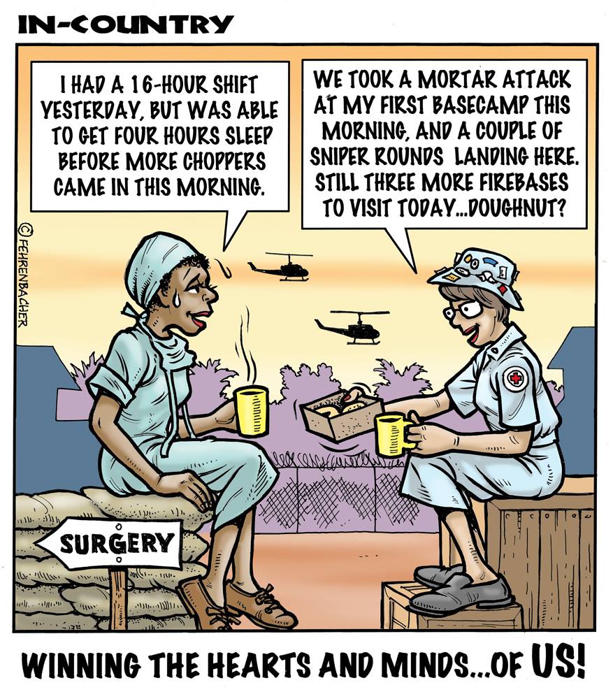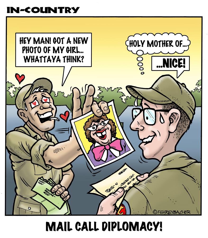 Phil enlisted in the Army in 1965 where he served for years in Vietnam. He became a graphic designer and has worked for the state of Oregon for 26 years. He retired in 2003 and started the Cartoon "In-Country". The cartoons reflect his experiences during his tour of duty in South Vietnam.